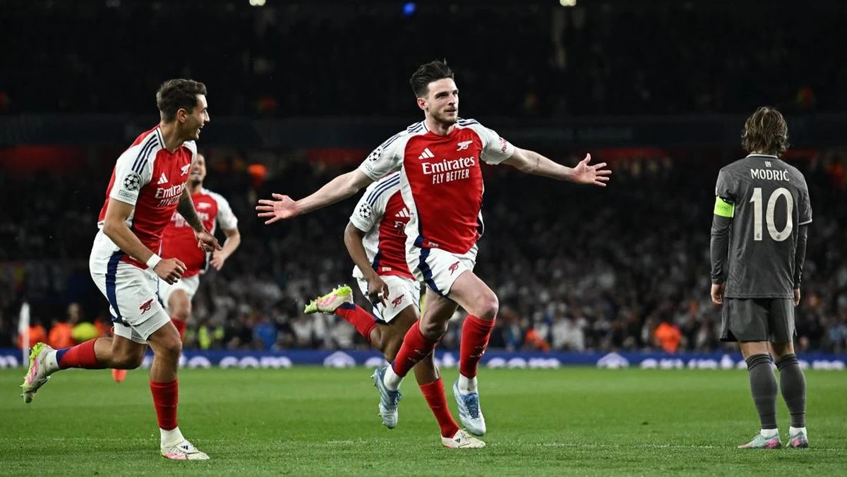 Arsenal menggila di babak kedua. Declan Rice mencetak brace lewat tembakan bebas dan Mikel Merino menyumbang satu gol untuk membuat tim asal London Utara Itu menang 3-0.