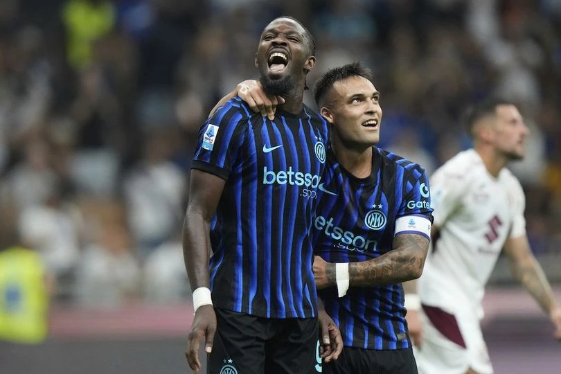 Inter: Sommer; Bisseck, Acerbi, Bastoni, Dumfries, Barella, Calhanoglu, Sucic, Dimarco, Lautaro Martinez, Thuram