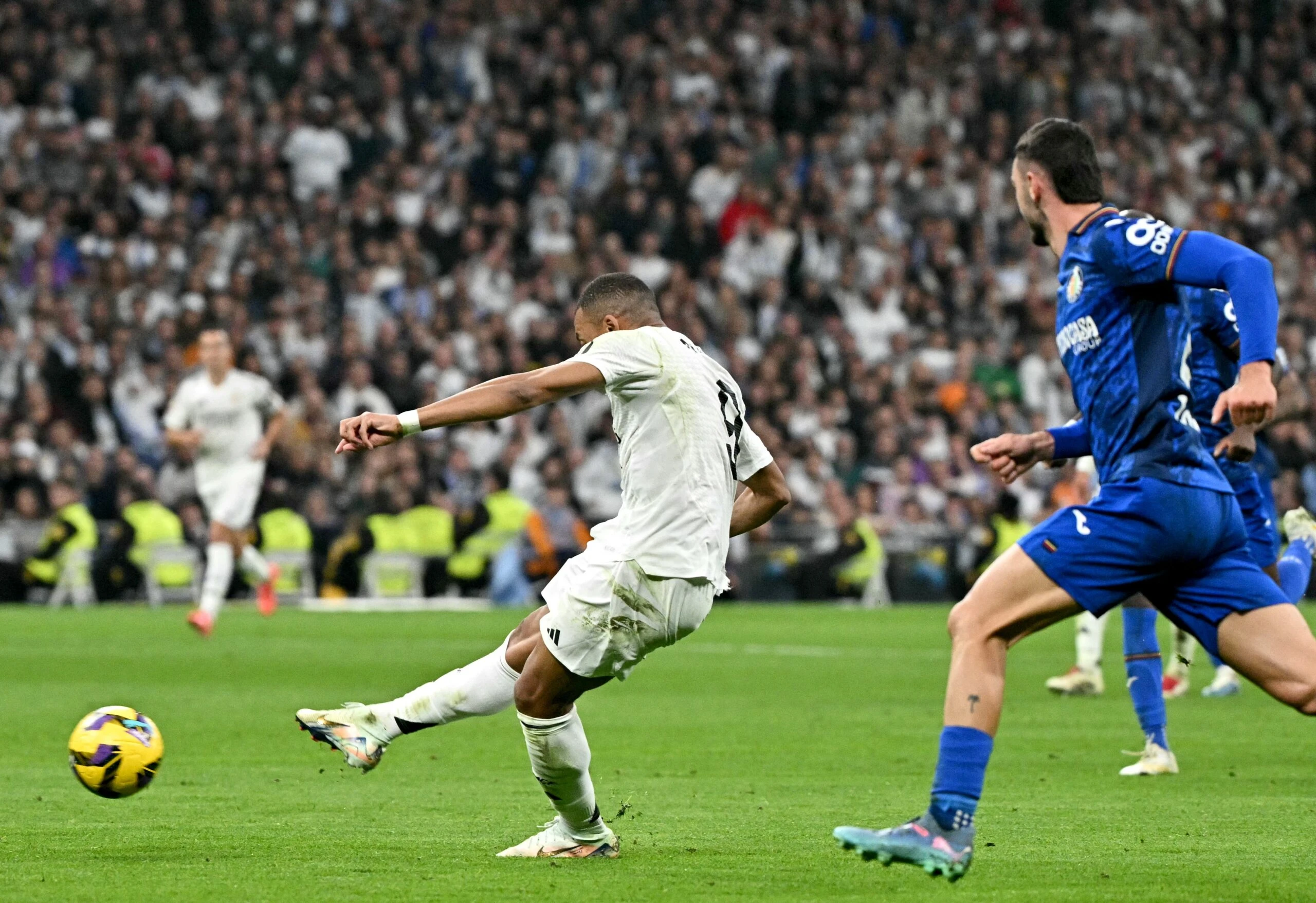 Kondisi ini dimanfaatkan dengan baik oleh tim tamu. Madrid yang terus menekan akhirnya memecah kebuntuan lewat aksi individual Kylian Mbappé. Mendapatkan umpan terobosan dari Federico Valverde, Mbappé menusuk ke kotak penalti dan melepaskan tembakan mendatar yang tak mampu dibendung kiper David Soria.